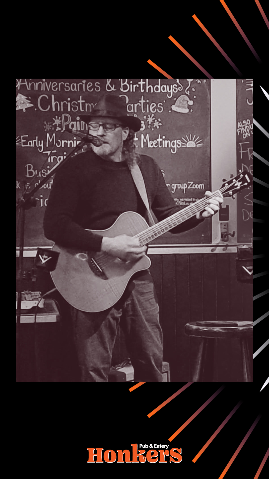 LIVE MUSIC & Events LIVE ENTERTAINMENT on the STEVE KEENAN Stage No cover charge unless listed Support local artists Great food and drinks! View Schedule Music & Event Schedule Open Mic w/ Shuffle The Deck Fri, April 24, 2026 7:00 pm Open Mic w/ Dennis & Joy Sat, April 25, 2026 5:00 pm Open Mic w/Jolene Draper Fri, May 1, 2026 7:00 pm Latin Rev SHOW – No Cover Sat, May 2, 2026 7:00 pm Open Mic w/Keith “Catfish” Woodrow Fri, May 8, 2026 7:00 pm Open Mic w/ Aaron Landry Sat, May 9, 2026 5:00 pm Undefined SHOW Fri, May 15, 2026 7:00 pm No Music – Happy May Long Weekend! Sat, May 16, 2026 Open Mic w/ Blown Minds & Whiskey Dreams Fri, May 22, 2026 7:00 pm Open Mic w/Ann Tollestrup Sat, May 23, 2026 5:00 pm Open Mic w/Mark Hall & Friends Fri, May 29, 2026 7:00 pm TBA – Music Needed Sat, May 30, 2026 5:00 pm Save The Date! Honkers 6th Annual Outdoor Music Fest Sat, July 11, 2026 1:00 pm Interested in Performing at Honkers? BOOK NOW Hours Monday 11:00 am - 8:00 pm Tuesday & Wednesday 11:00 am - 8:00 pm Thursday 11:00 am - 10:00 pm Friday 11:00 am - 12:00 am Saturday 9:00am - 11:00pm Sundays & Holidays Closed We may be open longer if we have an event or busy night please call ahead for closing time. Newsletter Subscribe for our Daily Specials & Events. Email Address Please enter a valid email address. Subscribe Thanks for subscribing! Please check your email for further instructions. Something went wrong. Please check your entries and try again. You may unsubscribe at any time, we do not spam. Honkers Pub & Eatery All Rights Reserved - Website by Artrageous
